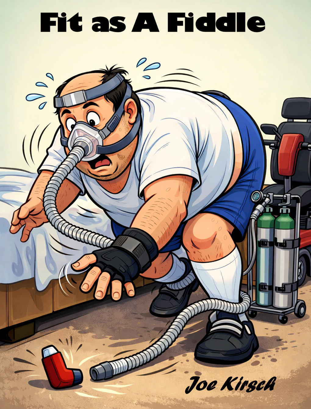 While bending down to pull up my compression socks, I accidentally dropped my rescue inhaler. When I went to retrieve it, my carpal-tunnel hand brace became entangled with the CPAP hose, causing me to pitch forward into my oxygen cylinder rack. This was not a fall so much as an unfortunate convergence of modern medical accessories.