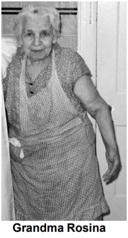 Almost a cliche of an old Italian woman with a gray bun in her hair, and tissues stuffed up the end of the sleeve of her flowered smock. But under it still dressed in black, long after her husband had passed. Her dark stockings rolled down mid-shin as she walked into her kitchen wielding a wooden spoon in hand. Well past 90 she referred to me only as "eh boy" - my name probably escaping her since I was the last grandchild of the many others born to her nineteen children! Yep - nineteen!